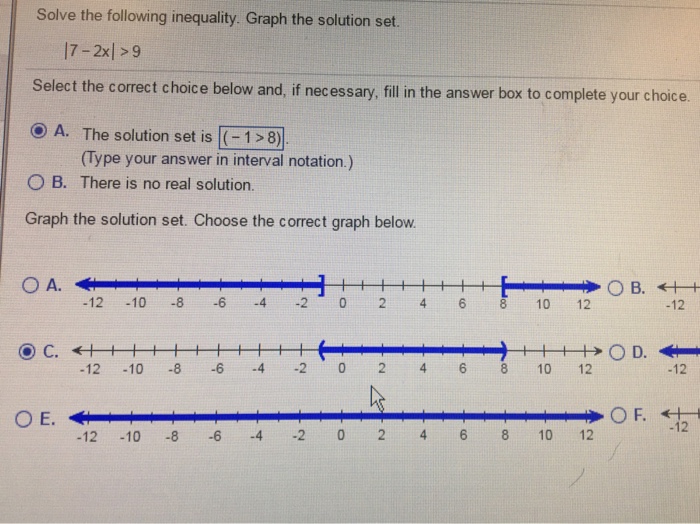 Solved: Solve The Inequality. Then Graph The Solution Set ... from d2vlcm61l7u1fs.cloudfront.net In the graphing method, we just need to graph each inequality. How to solve and graph the solution set to a given linear inequality with one variable. Extend the line a little further in both directions and put an. Sometimes making a table of values makes sense for more complicated inequalities. 1 in finding the solution set for a system of inequalities in two variables, we can use the graphing method. Makes the inequality 3x+2y≤6 3 x + 2 y ≤ 6 a true statement. How do you use graph to solve inequality? How do you solve a solution set?